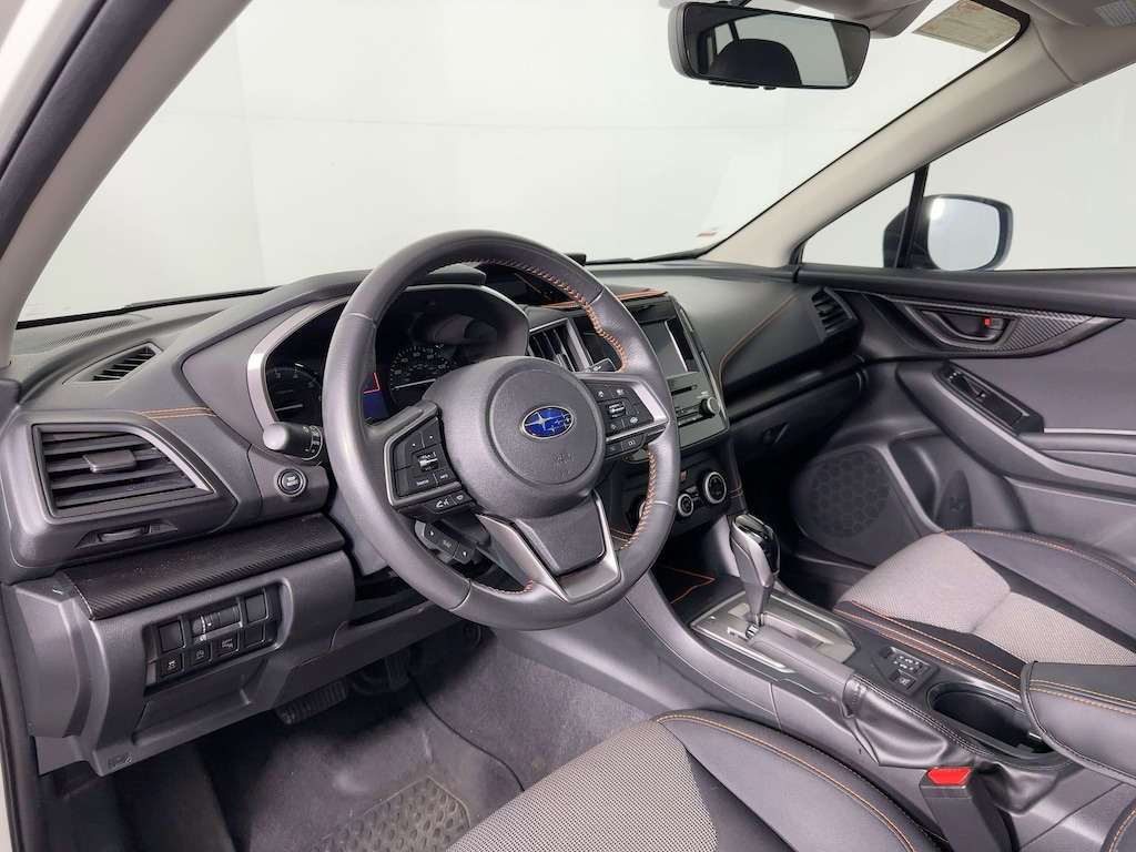 MAP & DOME LIGHTS LED UPGRADE -inc: Part number H461SFL100, CRYSTAL WHITE PEARL, BLACK W/ORANGE STITCHING, CLOTH UPHOLSTERY, Wireless Phone Connectivity, Wheels: 17" Alloy, Voice Activated Automatic Air Conditioning, Trip Computer, Transmission: Lineartronic CVT -inc: steering wheel paddle-shift control switches, 8-speed manual shift mode, X-MODE, hill descent control (HDC), SI-DRIVE engine performance management: I and S mode and auto start-stop, Transmission w/Driver Selectable Mode and Oil Cooler, Tires: 225/60R17 98H AS. This Subaru Crosstrek has a powerful Regular Unleaded H-4 2.0 L/122 engine powering this Variable transmission.